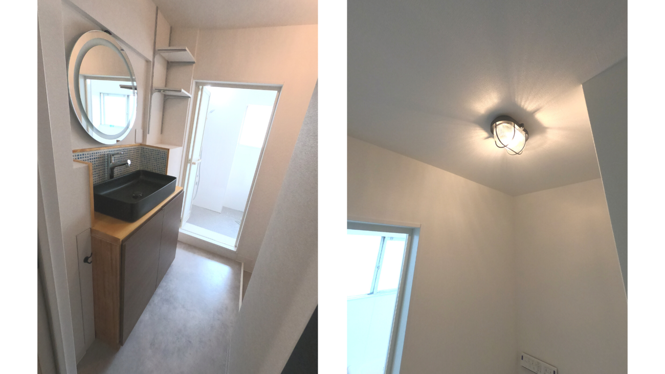 トイレの壁をなくして、一体型の洗面所に変更し、圧迫感のない洗面所になりました♪